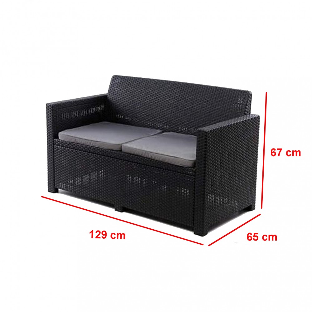 Bruttó ár: 119 990 Ft.Elfogyott!Monaco Set rattan hatású műanyag kerti 4 személyes kerti bútor garnitúra, tárolós asztallal, mely tartalmaz 2 db fotelt ülőpárnákkal, 1 db kétszemélyes kanapét ülőpárnákkal és 1 db tárolós dohányzó asztalt. Curver 17200031-216779
