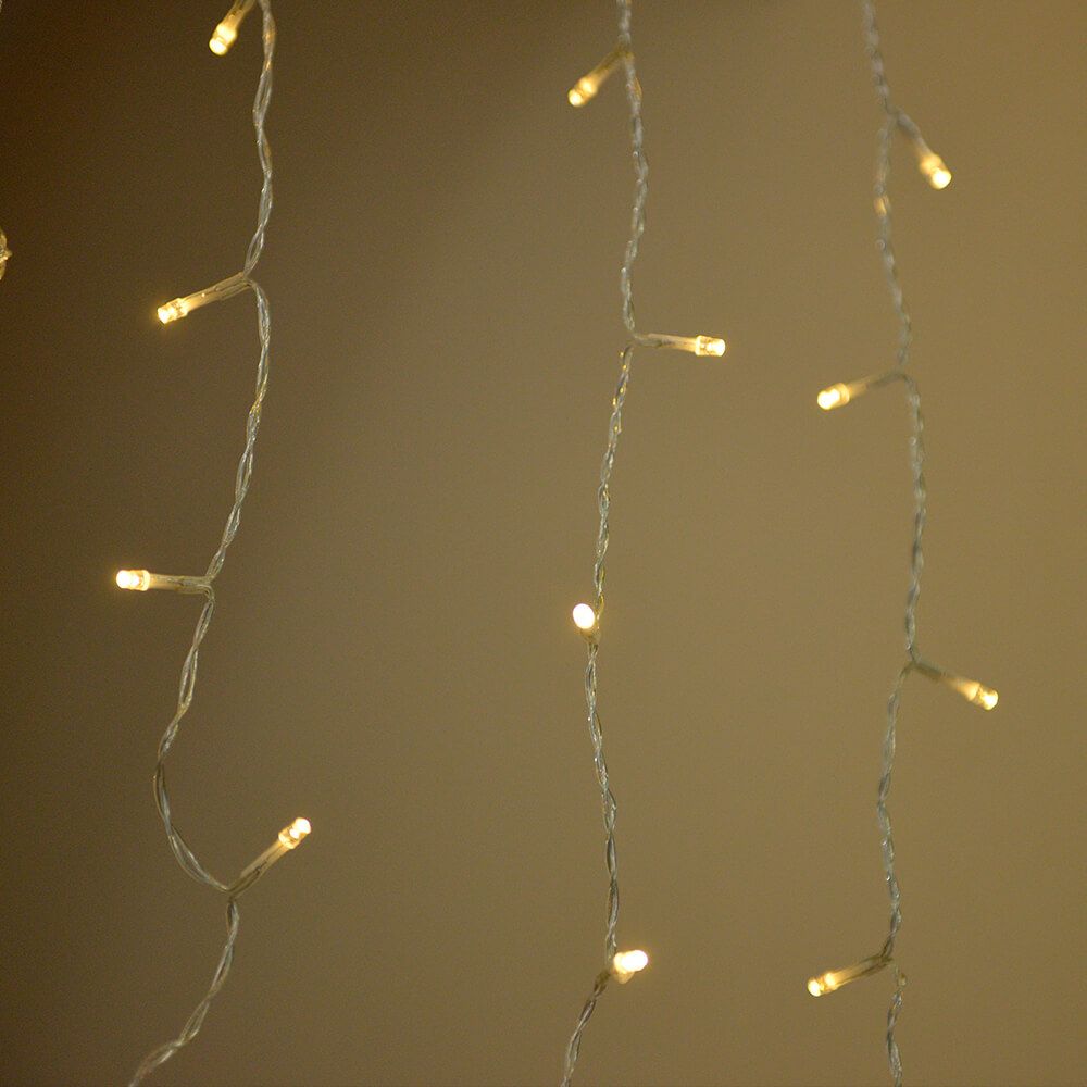 Árkád fényfüggöny, meleg fehér, átlátszó kábel, 2 x 2 m, 220 LED