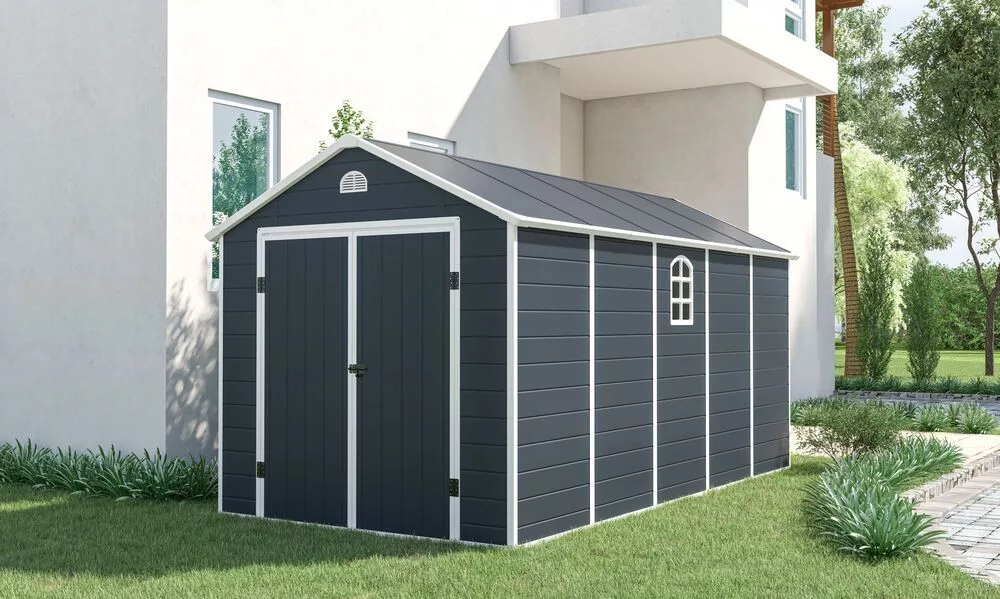 Bruttó ár: 314 990 Ft.RészletekAve E 6x9 műanyag kültéri kerti ház sötét szürke - fehér