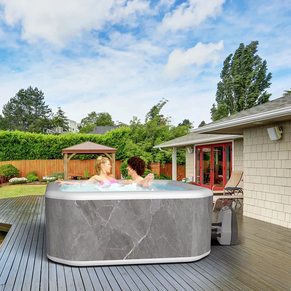 Extra nagyméretű felfújható jakuzzi 4-6 főre, elegáns szürke márvány mintával, telefonos vezérléssel.