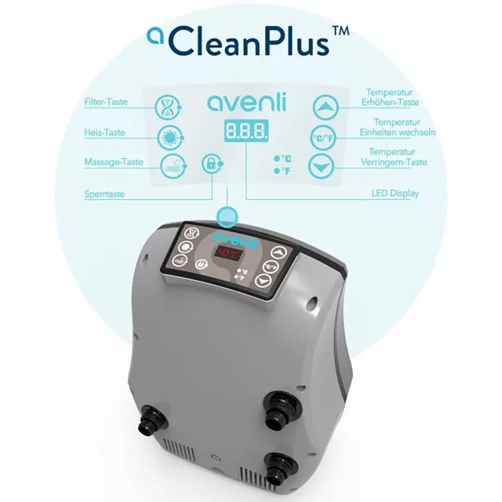 A víz felmelegítését egy biztonságos, dupla szigetelésű, beépített fűtőrendszer végzi Kb. 1.5-2.0 ˚C/h teljesítménnyel. Az Avenli jakuzzi gyártója 30 éve gyárt és fejleszt medencéket a világ minden tájára.