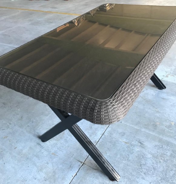 Bamboo műanyag rattan hatású kerti üveglapos asztal antracit szürke