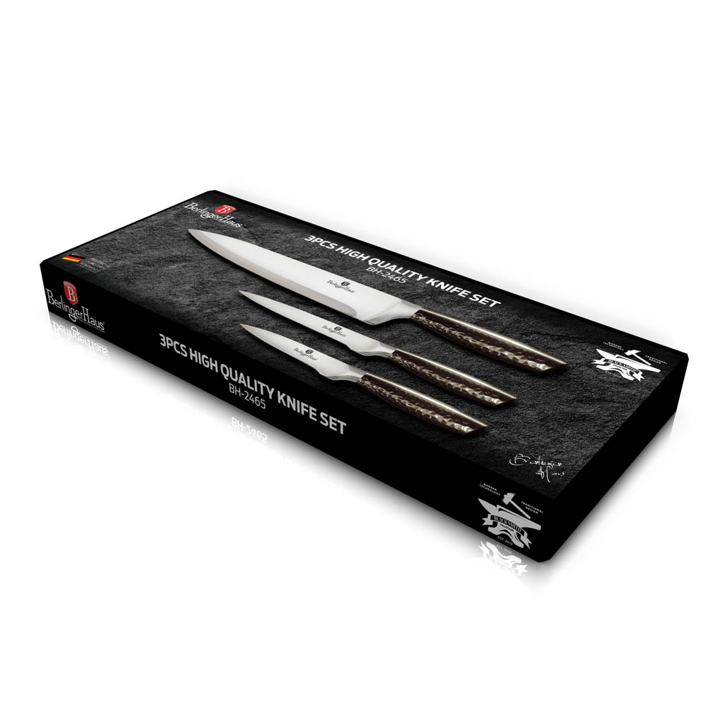 Bruttó ár: 7 400 Ft.Elfogyott!Berlinger Haus 3 részes késkészlet állvánnyal black