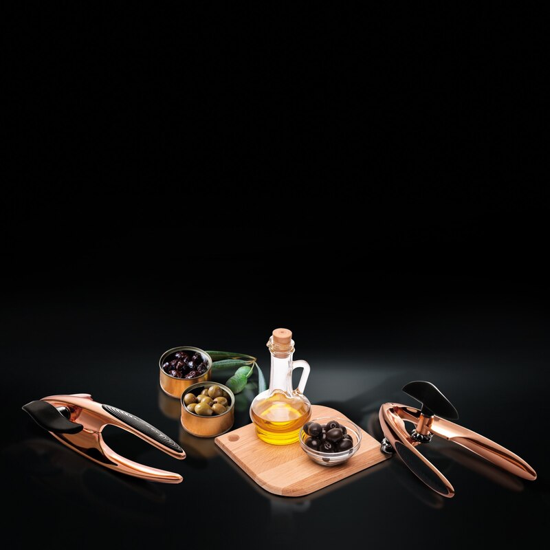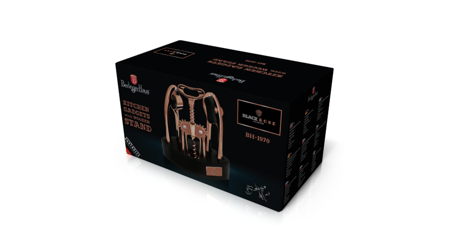 A Berlinger Haus Metallic Line 4 részes konyhaeszköz készlet eszközei cink ötvözetből készültek, metál színű bevonattal, mely design külsőt biztosít az eszközöknek. A készlethez tartozik egy állvány is, mely biztosítja, hogy a szükséges eszközök ne foglaljanak sok helyet, még is mindig kéznél legyenek, ha szükség van rájuk.