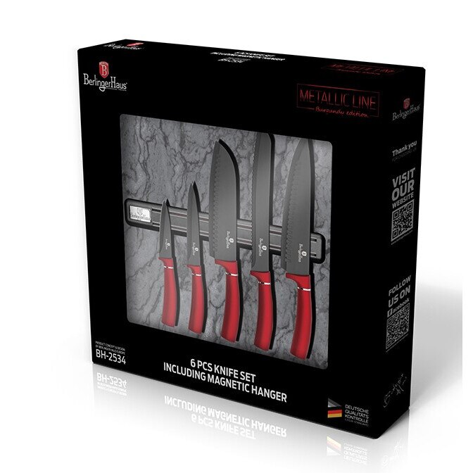 Berlinger Haus - 6 darabos késkészlet mágneses függő rendszerrel - burgundy