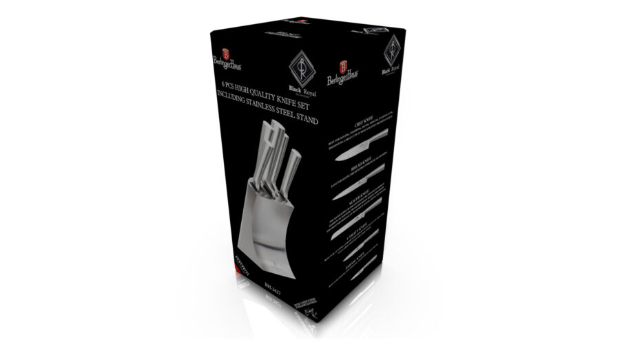 Bruttó ár: 18 500 Ft.Elfogyott!Berlinger Haus 6 részes rozsdamentes acél késkészlet rozsdamentes állvánnyal, rozsdamentes