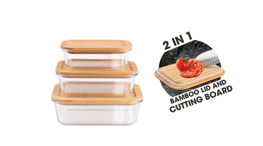 A bambuszból készült fedők szilikon tömítése biztonságosan és szivárgásmentesen zárja a dobozokat.