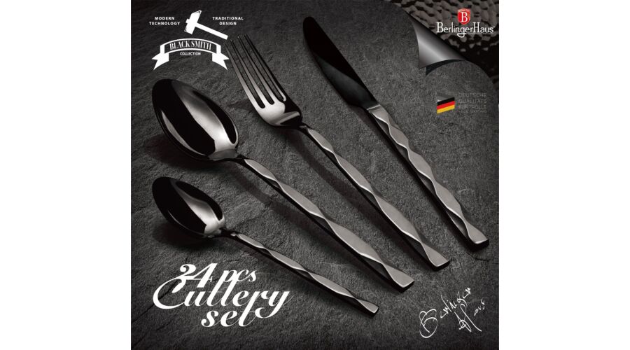 Bruttó ár: 9 290 Ft.Elfogyott!Berlinger Haus 6 személyes rozsdamentes acél evőeszköz készlet,fekete színben, különleges mintával