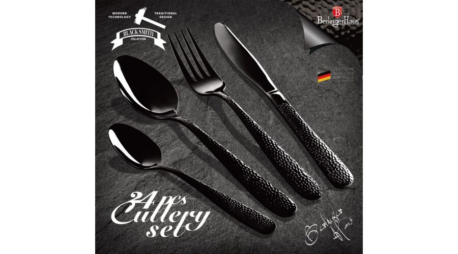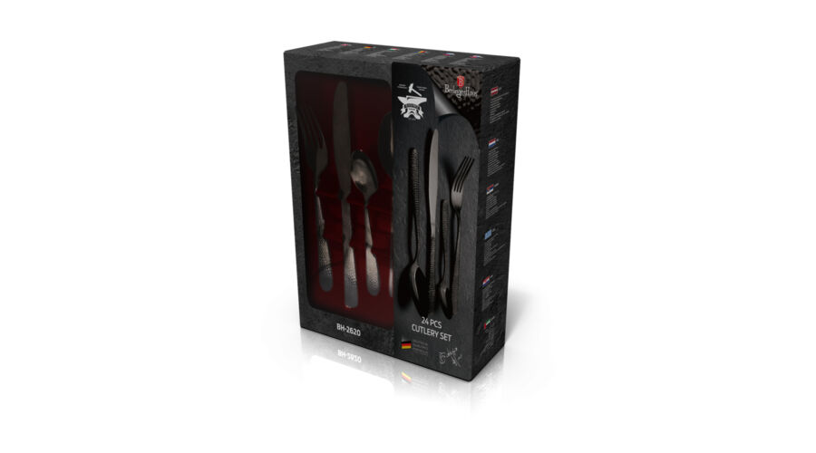 Berlinger Haus 6 személyes rozsdamentes acél evőeszköz készlet,fekete színben, különleges mintával