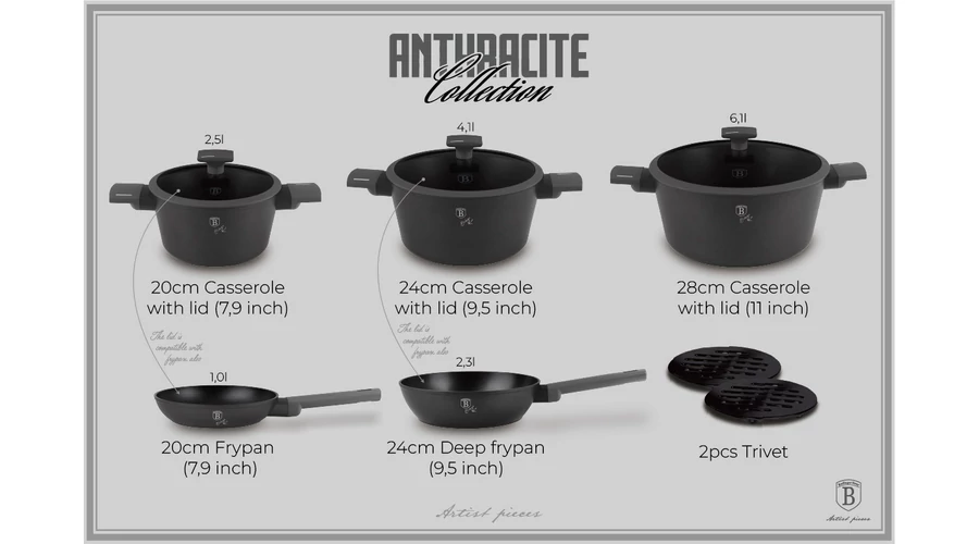 Berlinger Haus Antracit Collection 10 részes edénykészlet titán bevonattal