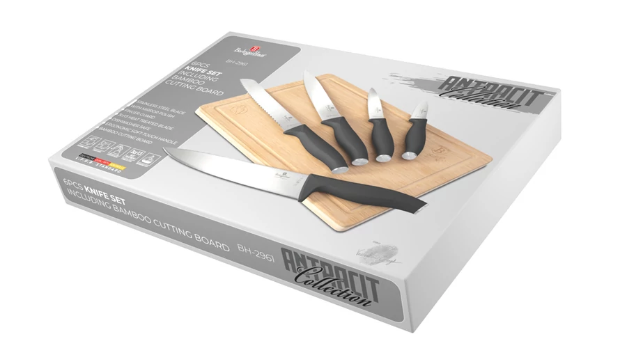 Berlinger Haus Antracit Collection 6 részes késkészlet bambusz vágódeszkával