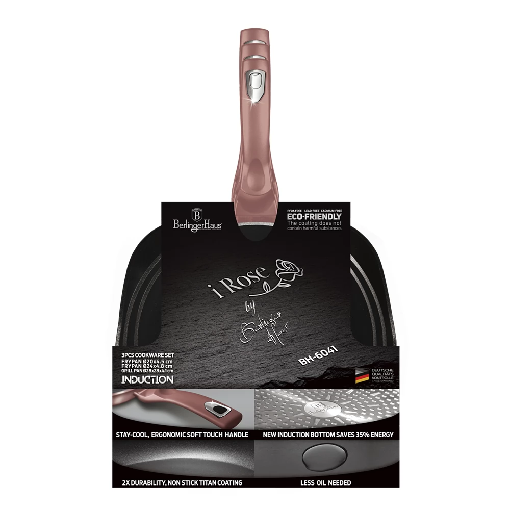 Bruttó ár: 17 690 Ft.Elfogyott!Berlinger Haus I-Rose Collection 3 részes serpenyőkészlet titán bevonattal