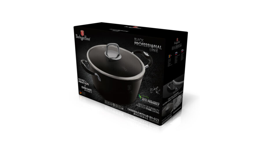 Bruttó ár: 7 100 Ft.Elfogyott!Berlinger Haus Black Professional Line magas lábas titán bevonattal, szilikon fogókkal, fedővel, 24 cm