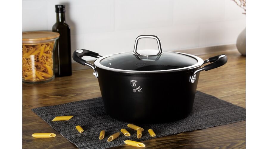 Berlinger Haus Black Professional Line magas lábas titán bevonattal, szilikon fogókkal, fedővel, 24