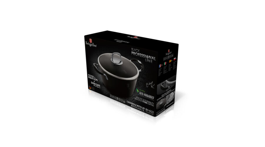 Berlinger Haus Black Professional Line magas lábas titán bevonattal, szilikon fogókkal, fedővel, 28