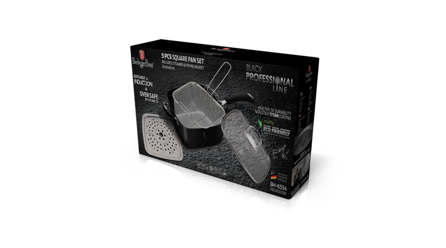 Berlinger Haus Black Professional Line szögletes serpenyő titán bevonattal, fedővel
