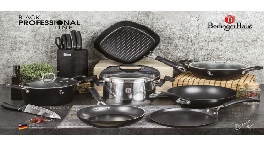 Bruttó ár: 9 290 Ft.RészletekBerlinger Haus Black Professional Line szögletes serpenyő titán bevonattal, fedővel
