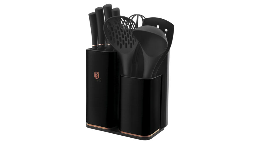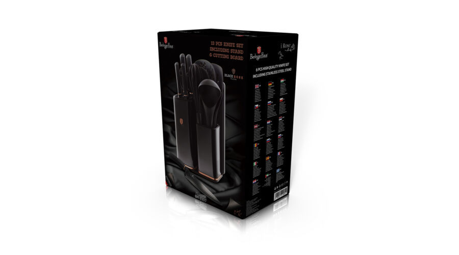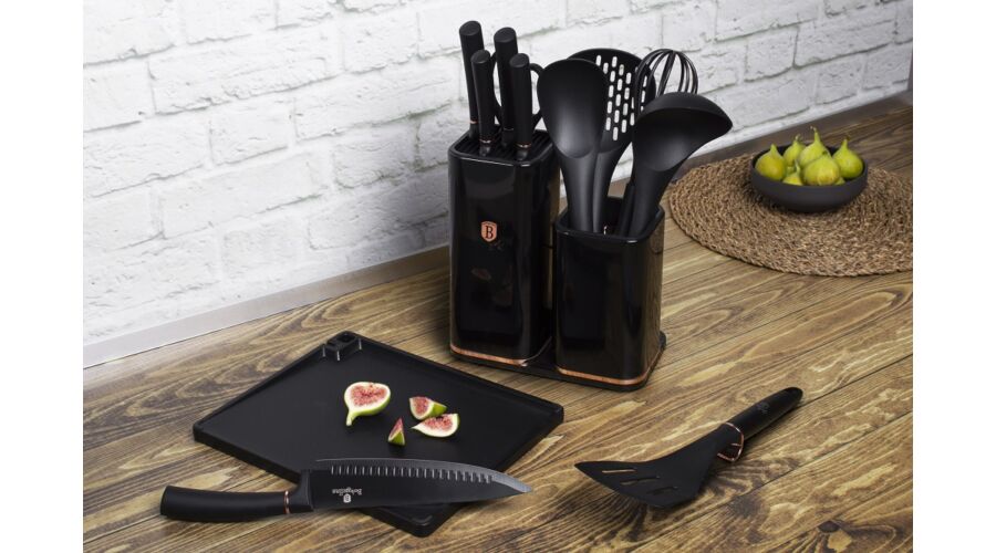 Bruttó ár: 7 590 Ft.Elfogyott!Berlinger Haus Black Rose Collection 12 részes konyhai készlet késekkel, kiszedőkkel és vágódeszkával