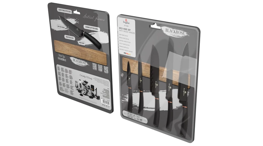 A Berlinger Haus Black Rose Collection rozsdamentes acélból készült kések pengéi tapadásmentes bevonatot kaptak, antibakteriálisak, nem foltosodnak és nem tartják meg az élelmiszerek szagát.
