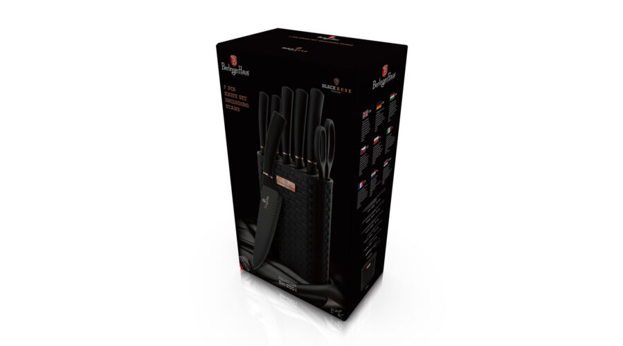 Berlinger Haus Black Rose Collection 7 részes rozsdamentes acél késkészlet tapadásmentes bevonattal, állvánnyal