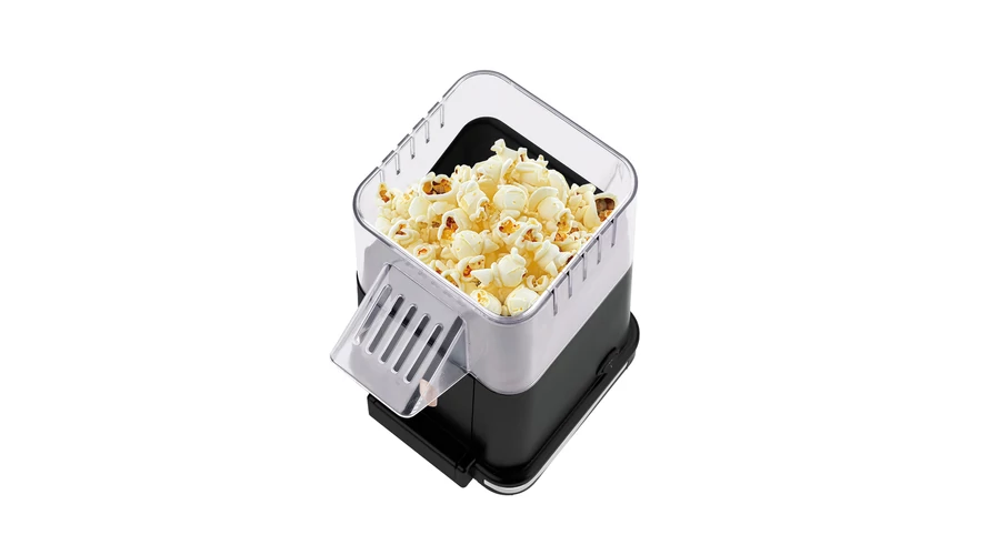 A készülék olaj nélkül, a forró levegő keringetésével pattogtatja ki a kukoricát.