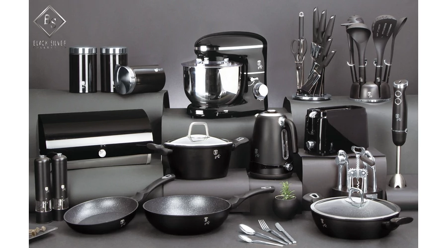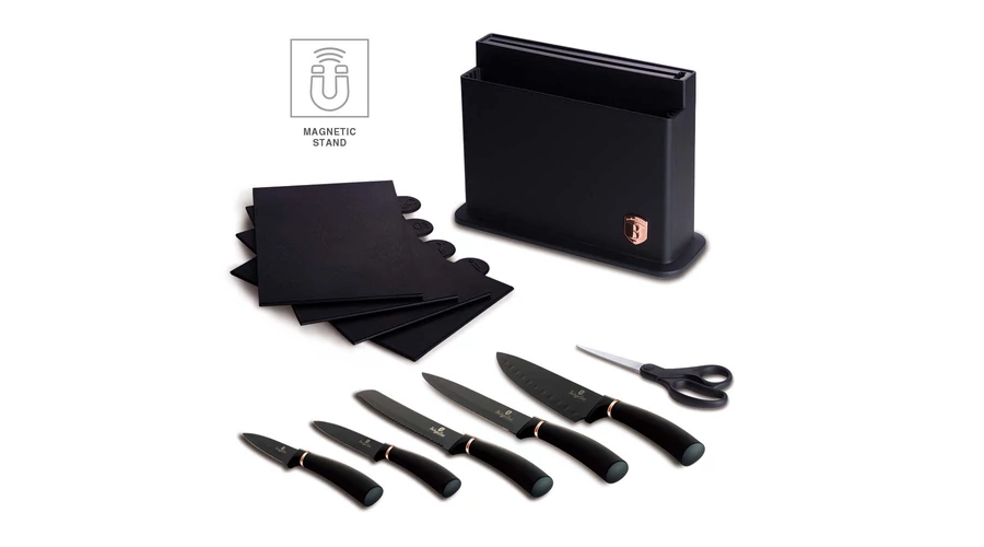 Bruttó ár: 6 890 Ft.Elfogyott!Berlinger Haus Black Silver Collection 8 részes rozsdamentes késkészlet tapadásmentes bevonattal, állvánnyal