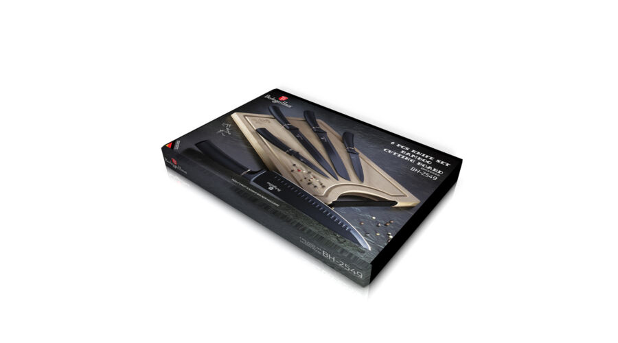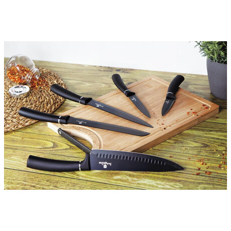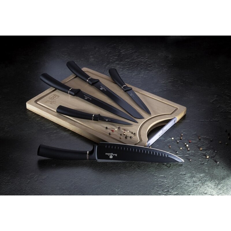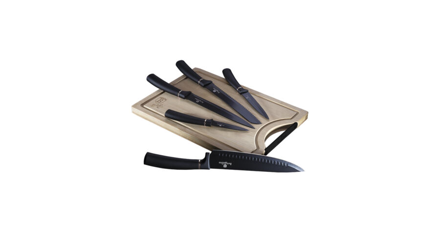 Bruttó ár: 20 190 Ft.Elfogyott!Berlinger Haus Black Silver Collection 6 részes késkészlet bambusz vágódeszkával