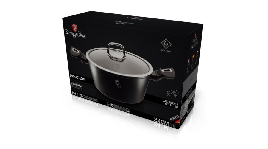 Bruttó ár: 15 190 Ft.Elfogyott!Berlinger Haus Black Silver Collection lábas márvány bevonattal, fedővel, 28 cm