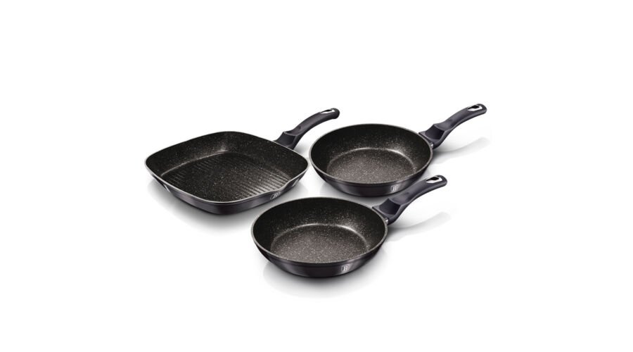 Berlinger Haus Carbon Pro Collection 3 részes serpenyőkészlet grill serpenyővel, márvány bevonattal