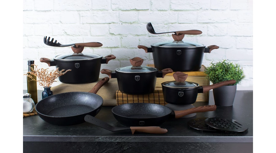 Berlinger Haus Ebony Rosewood Line 15 részes edénykészlet gránit-márvány bevonattal,rózsafa mintázat