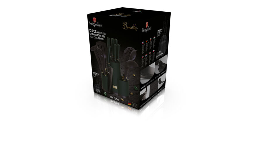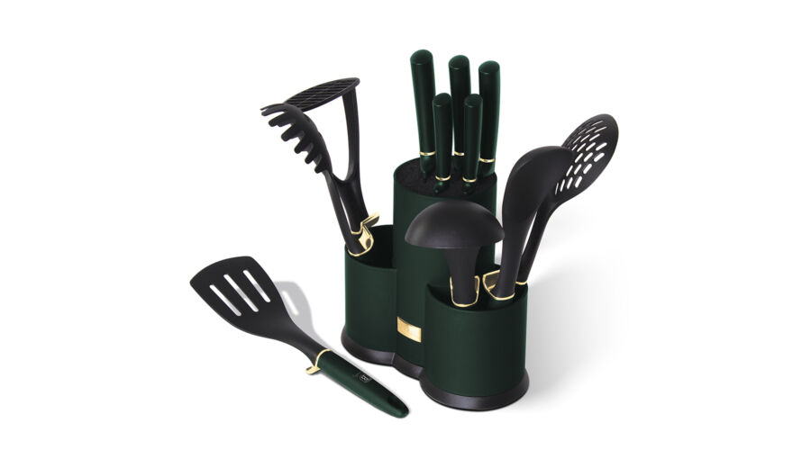Bruttó ár: 8 800 Ft.Elfogyott!Berlinger Haus Emerald Collection 12 részes konyhai készlet késekkel és kiszedőkkel, smaragdzöld metál