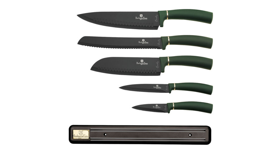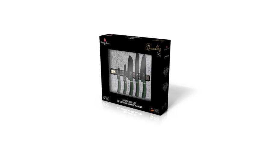 Bruttó ár: 11 100 Ft.Elfogyott!Berlinger Haus Emerald Collection 6 részes késkészlet tapadásmentes bevonattal, mágneses fali tartóval