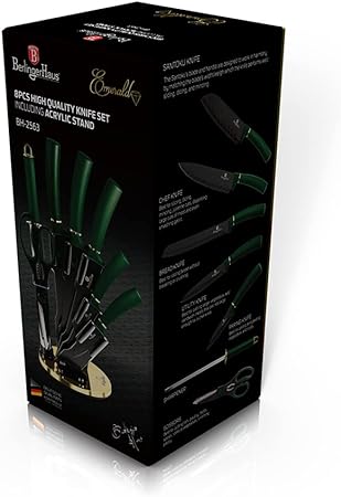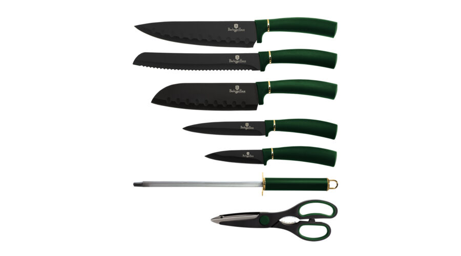Bruttó ár: 12 690 Ft.Elfogyott!Berlinger Haus Emerald Collection 8 részes késkészlet titán bevonattal, állvánnyal