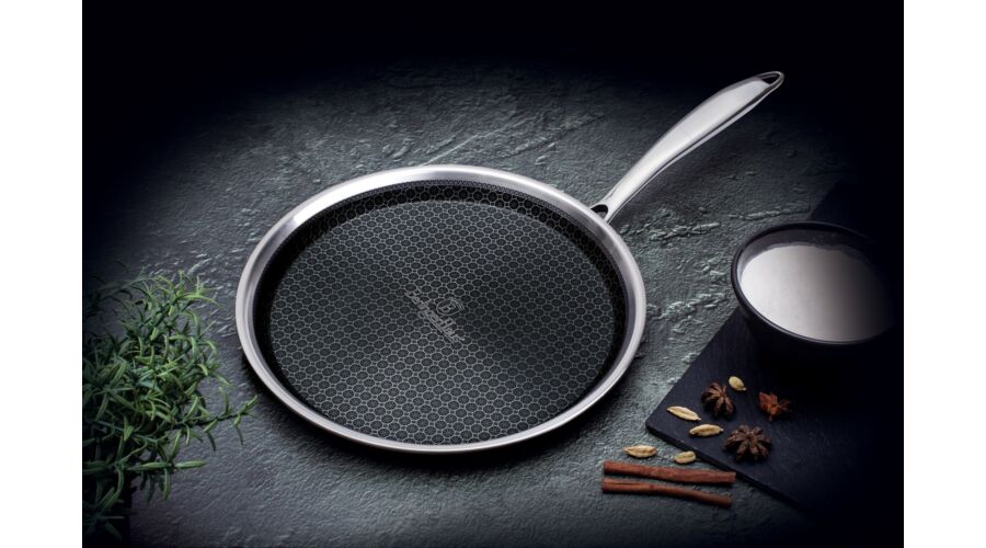 A palacsintasütő használható indukciós és hagyományos (gáz és villany) főzőlapokon, valamint sütőben egyaránt.