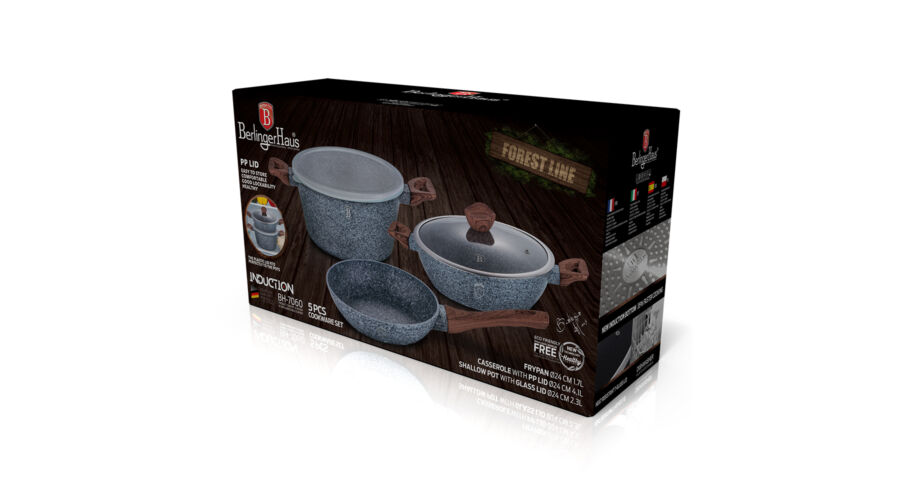 Bruttó ár: 31 690 Ft.Elfogyott!Berlinger Haus Forest Line 5 részes edénykészlet kő hatású márvány bevonattal