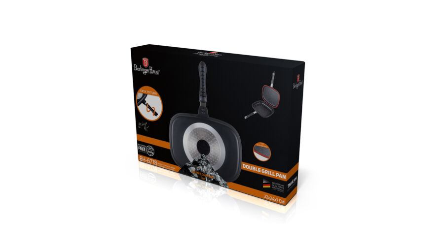Berlinger Haus Granit Diamond Line dupla indukciós grill serpenyő márvány bevonattal, nagy, fekete-narancssárga színben