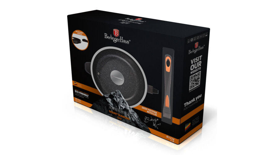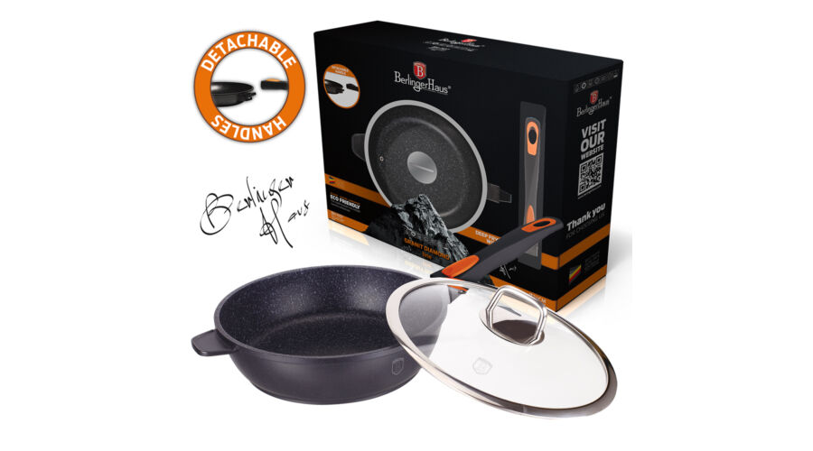 Bruttó ár: 11 790 Ft.Elfogyott!Berlinger Haus Granit Diamond Line mély serpenyő márvány bevonattal, levehető nyéllel és fedővel