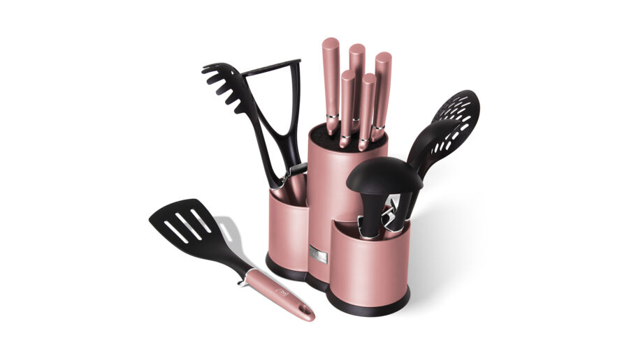 Berlinger Haus I-Rose Collection 12 részes konyhai készlet késekkel és kiszedőkkel, pink metál
