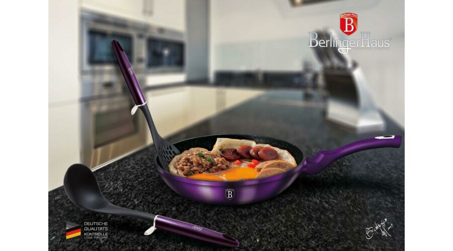 A Berlinger Haus Metallic Line Royal Purple konyhai eszközei nylonból készültek, így használat közben nem karcolják meg az edények, serpenyők márvány bevonatát.