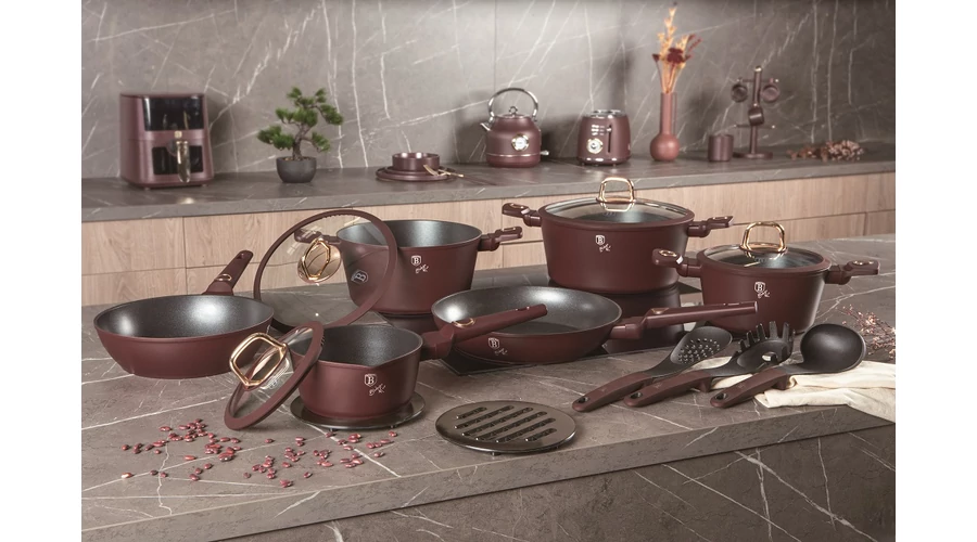 Bruttó ár: 25 690 Ft.RészletekBerlinger Haus Metallic Burgundy színben 6 részes edénykészlet márvány bevonattal, metál külső bevonattal