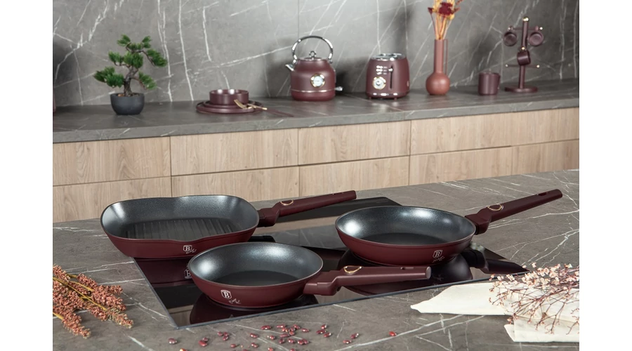 Bruttó ár: 9 100 Ft.Elfogyott!Berlinger Haus Metallic Burgundy Line 3 részes serpenyő- és grillkészlet márvány bevonattal