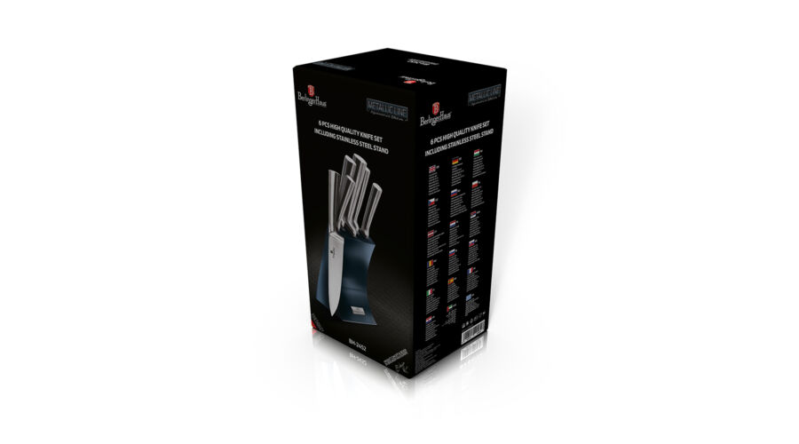 Berlinger Haus Metallic Aquamarine Line 6 részes rozsdamentes acél késkészlet, metál állvánnyal, sötétkék