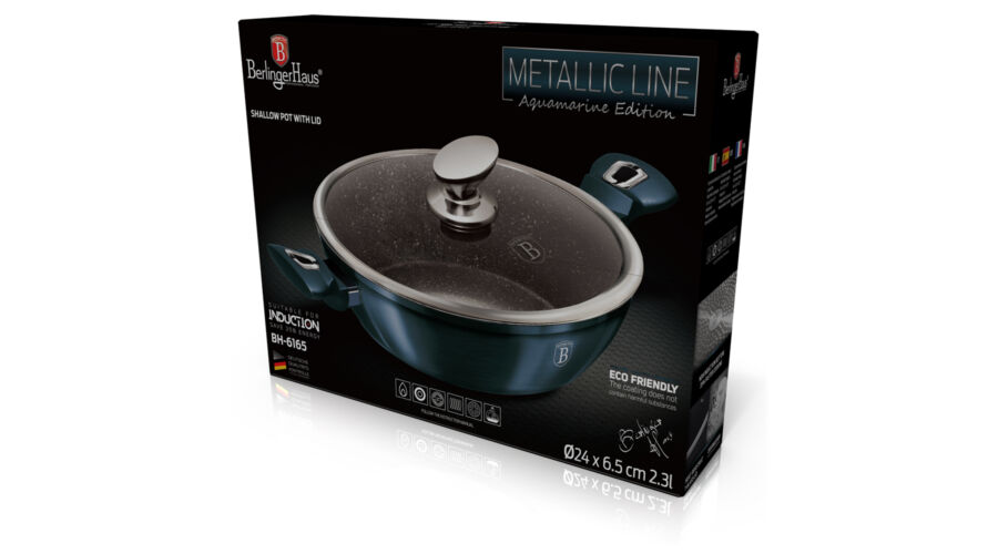 Berlinger Haus Metallic Aquamarine Line lábas márvány bevonattal, metál külső bevonattal, fedővel, 2