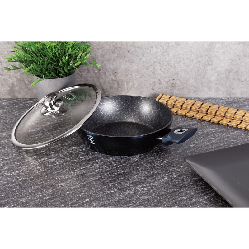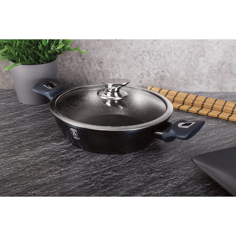 Berlinger Haus Metallic Aquamarine Line lábas márvány bevonattal, metál külső bevonattal, fedővel, 24 cm, sötétkék