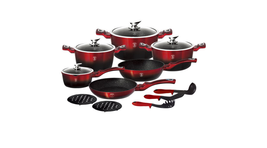 Berlinger Haus Metallic Black Burgundy Line 15 részes edénykészlet márvány bevonattal