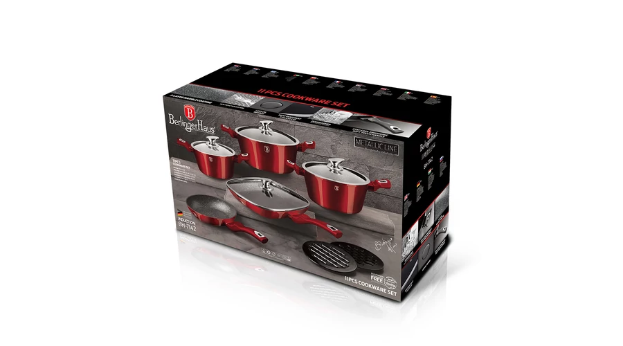 Berlinger Haus Metallic Burgundy 11 részes edénykészlet márvány bevonattal, metál külső bevonattal