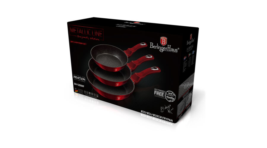 Berlinger Haus Metallic Burgundy 3 részes serpenyőkészlet márvány bevonattal