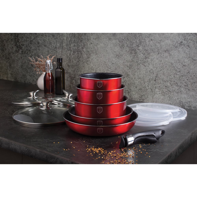 Bruttó ár: 18 290 Ft.Elfogyott!Berlinger Haus Metallic Burgundy Line 12 részes edénykészlet márvány bevonattal