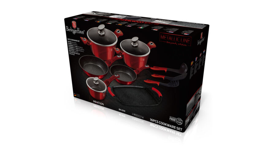 A Berlinger Haus Metallic Burgundy Line kovácsolt alumíniumból készült edények három réteg márványbevonata és a turbó indukciós talp lehetővé teszi, hogy ételei energiatakarékosan és gyorsabban elkészüljenek.