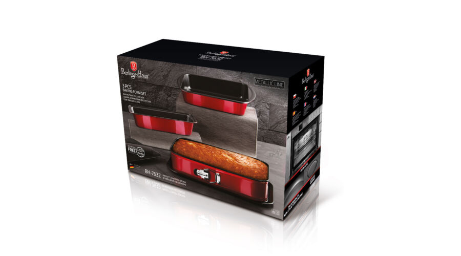 Bruttó ár: 3 290 Ft.Elfogyott!Berlinger Haus Metallic Burgundy Line 3 részes sütőforma készlet titán bevonattal, metál külső bevonattal